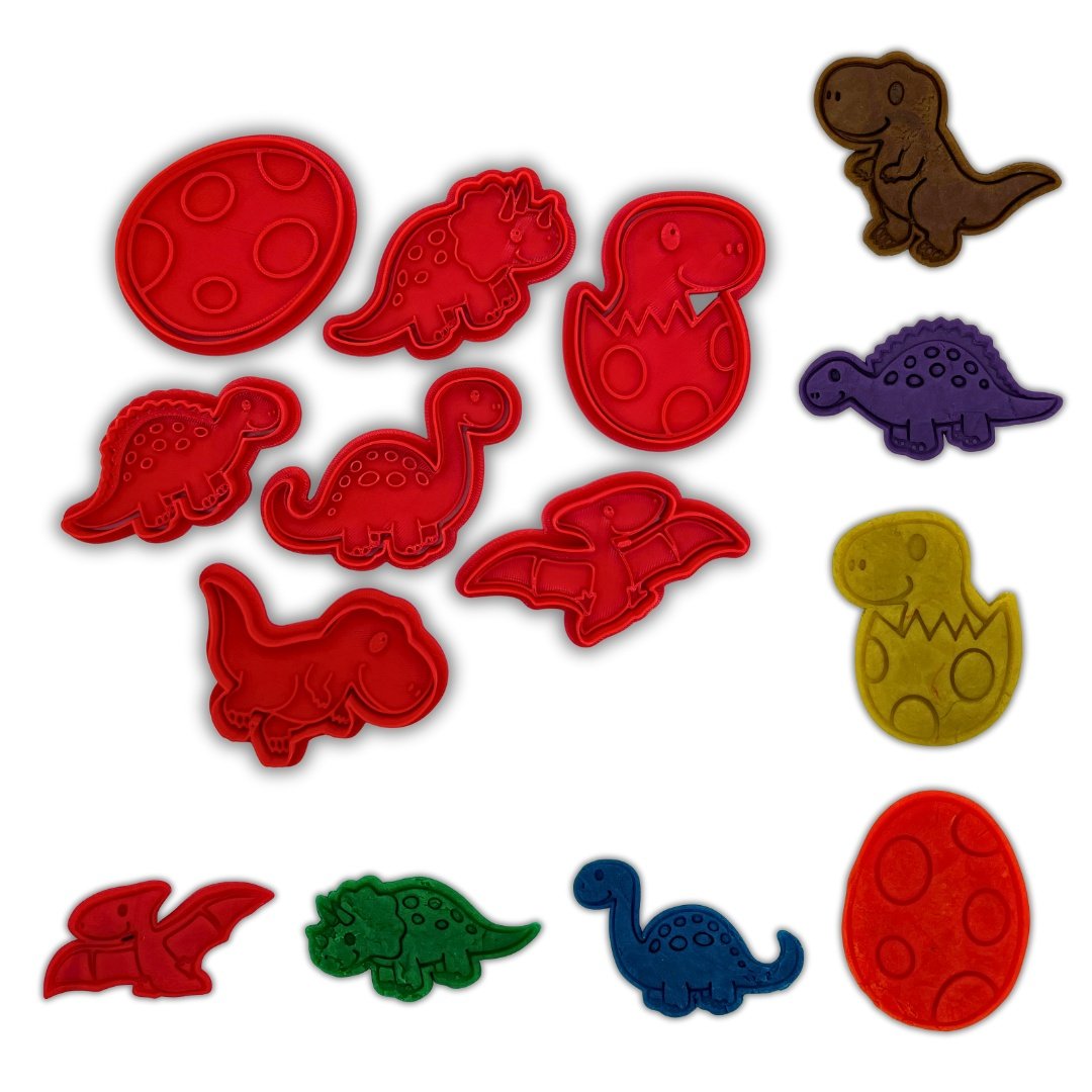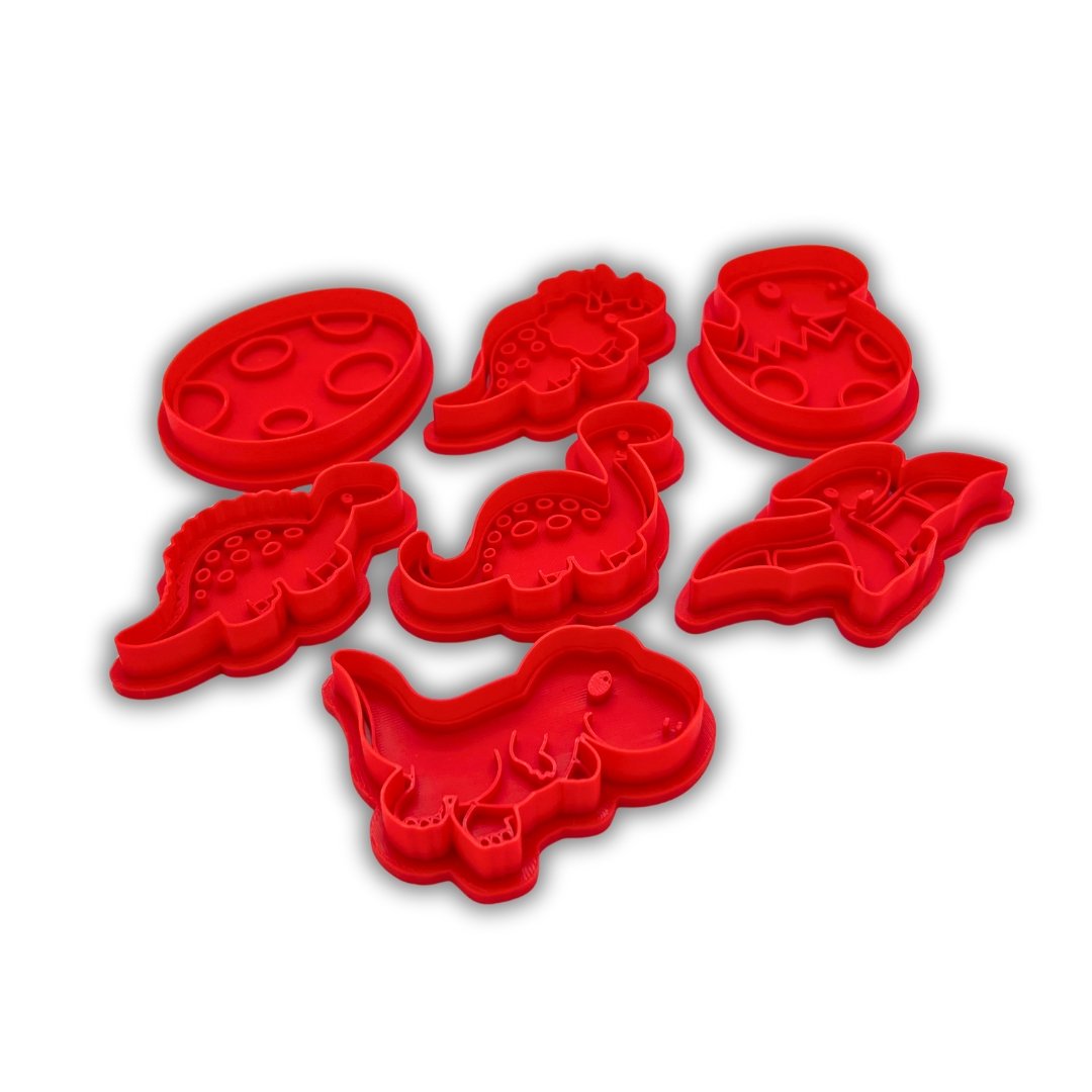 Denna 7-delade 7 cm kakutskärare kommer med 7 olika dino kakformar.